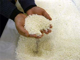 | 4 蒸米・放冷 | 吸水した白米を蒸気で過熱して蒸し、よく冷まします。適度な固さがあり、表面がべたついていない、ぱらっとした出来上がりになっているのが良い蒸米の条件です。 | ||||||